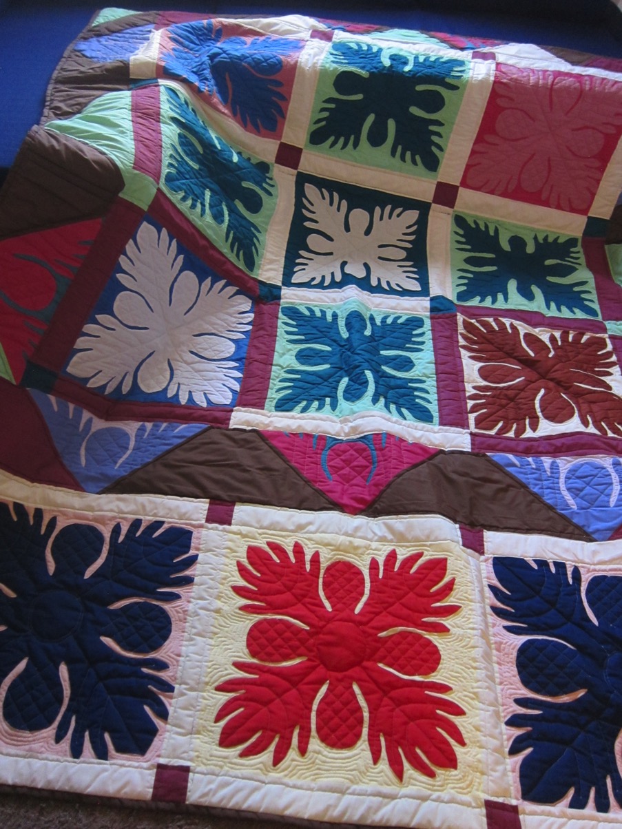 I bought this on ebay several years ago from a woman who had purchased it at a Kauai fundraiser. I’ve only used it as décor – I displayed it on a wall for a while and then later left it folded at the end of a bed – so it’s in truly pristine condition.